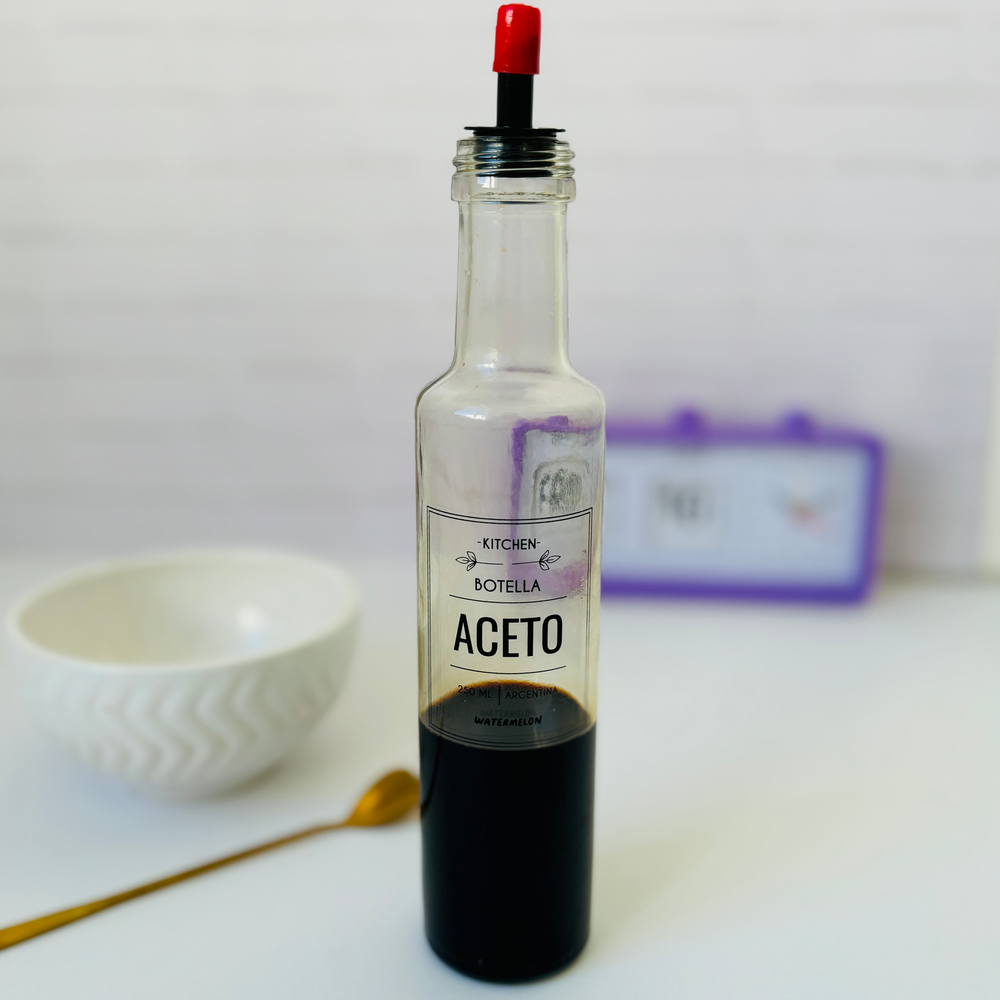 Botella de de vidrio ideal para colocar el aceto para tus ensaladas 🍅 Con pico vertidor super practico 💪Fuerte cierre de tapon para evitar los derrames ❌ ✨Combinalo con toda la linea✨ aceitera de vidrio con tapa de plastico