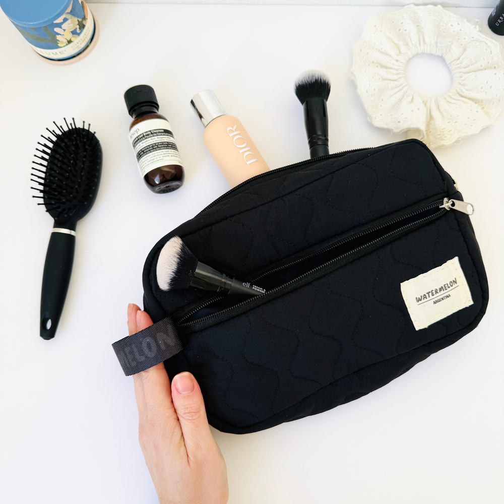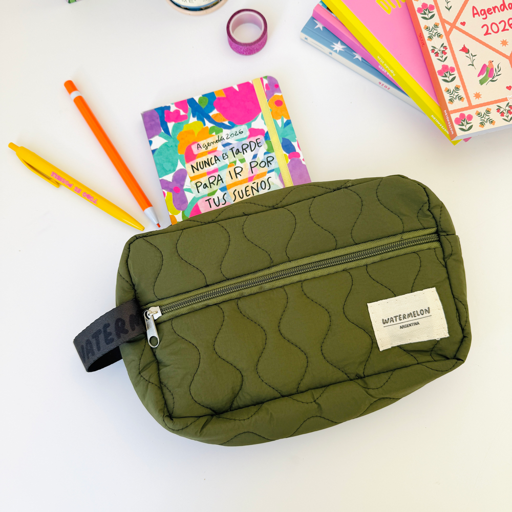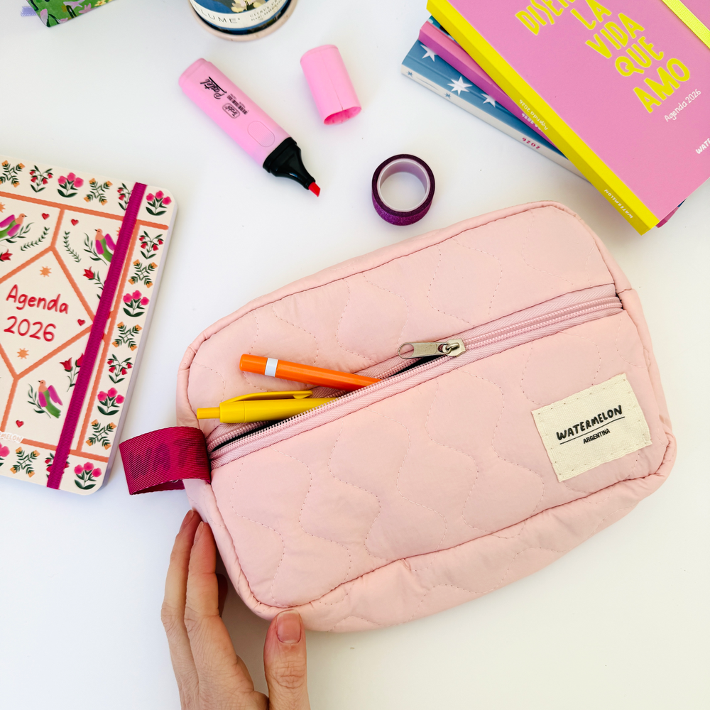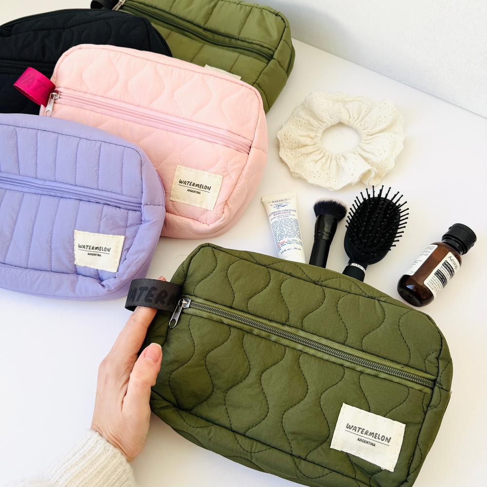 Necessaire con cierre matelasse 🌸 El complemento ideal para tu cartera podes usarla como cartuchera o guardar tus cosméticos ✨ ✅Contiene lazo lateral ✅Bolsillo frontal con cierre ✅Medidas 27x17cm