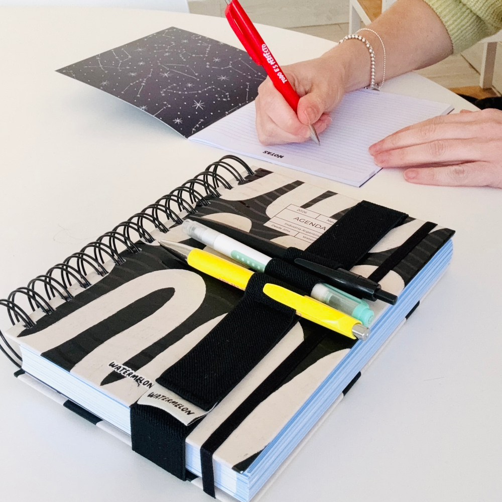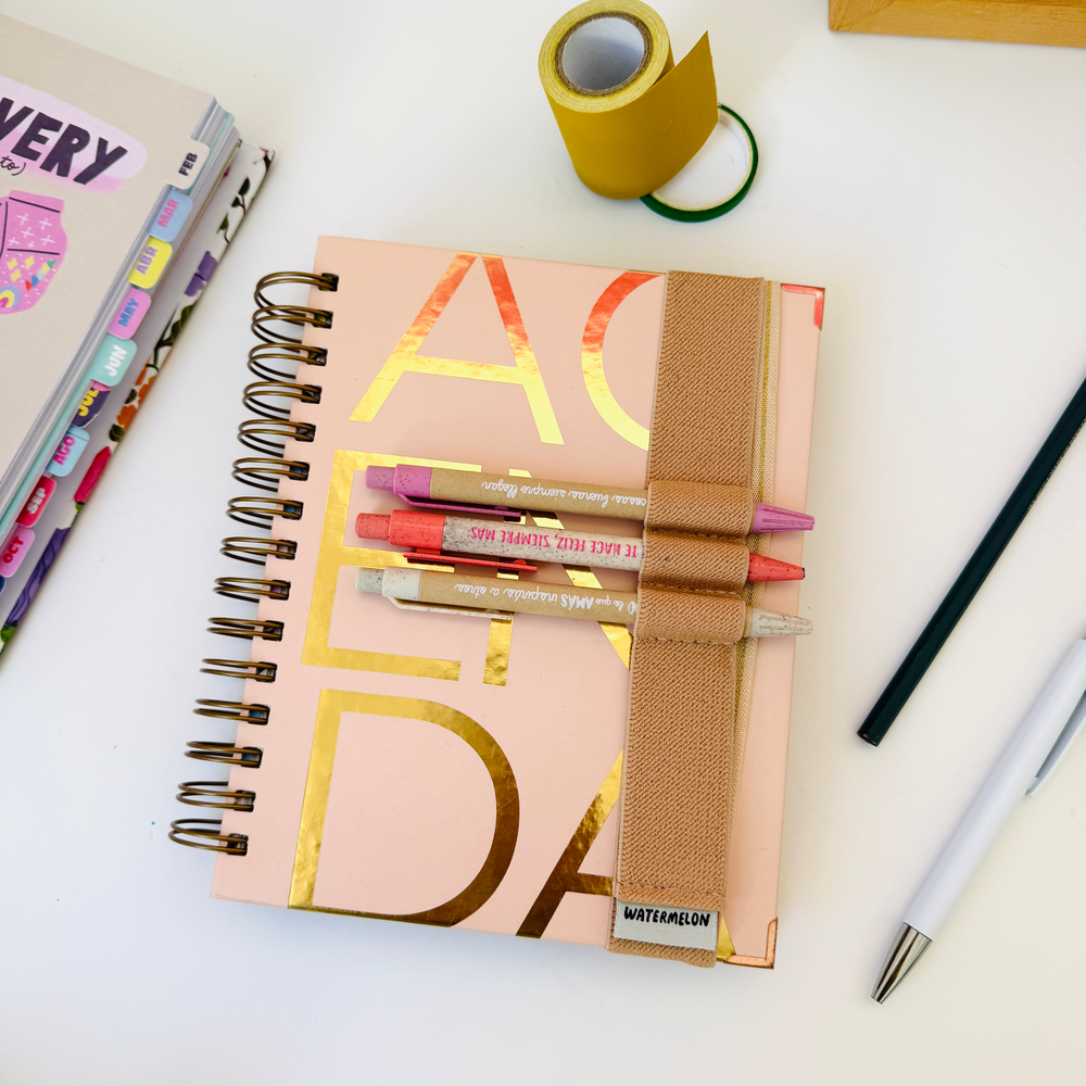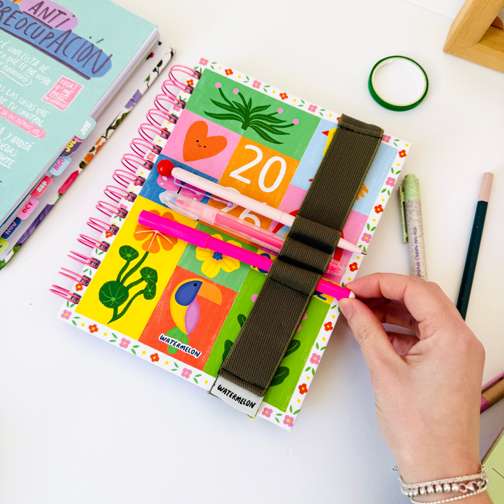 Portalapicera ajustable ✏️ Ideal para llevar siempre tus lápices o lapiceras junto a tu agenda. Se ajusta fácilmente y te acompaña a donde vayas. ¡Práctico, cómodo y siempre a mano! 💕