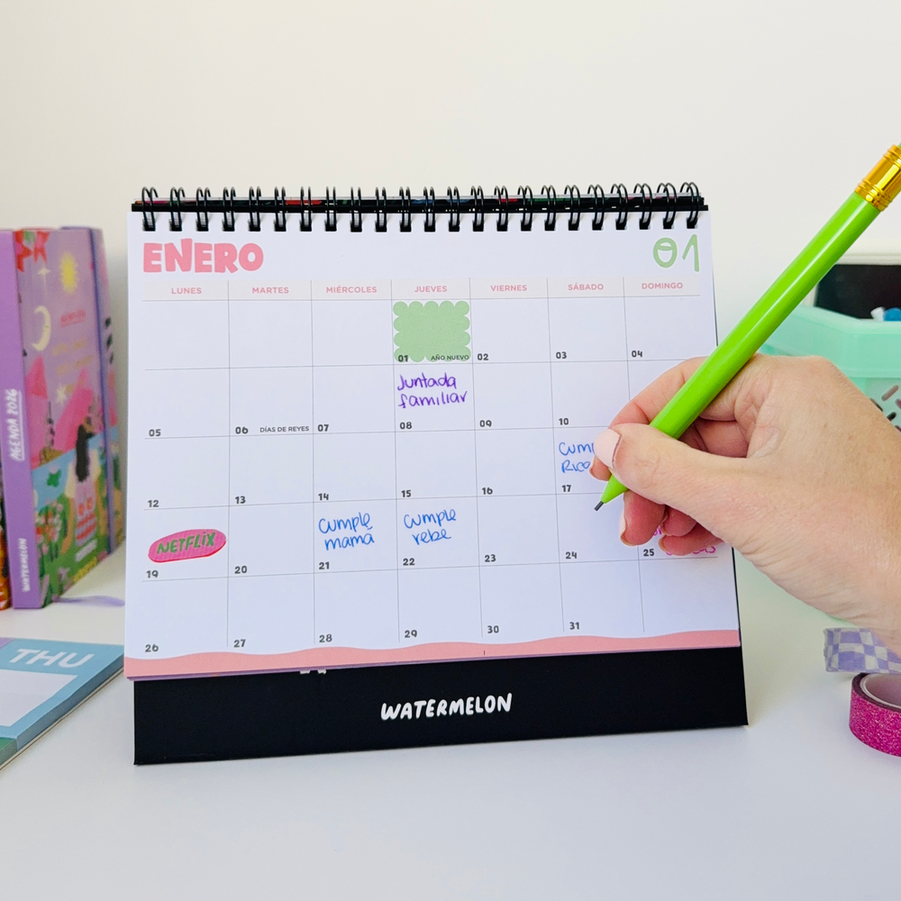 Calendario Premium ✨ Perfecto para acompañarte en tu escritorio durante todo el año. Cada mes viene con una frase inspiradora que te motiva a seguir adelante. Con un diseño colorido y funcional, ideal para mantener tus días organizados y llenos de buena energía.