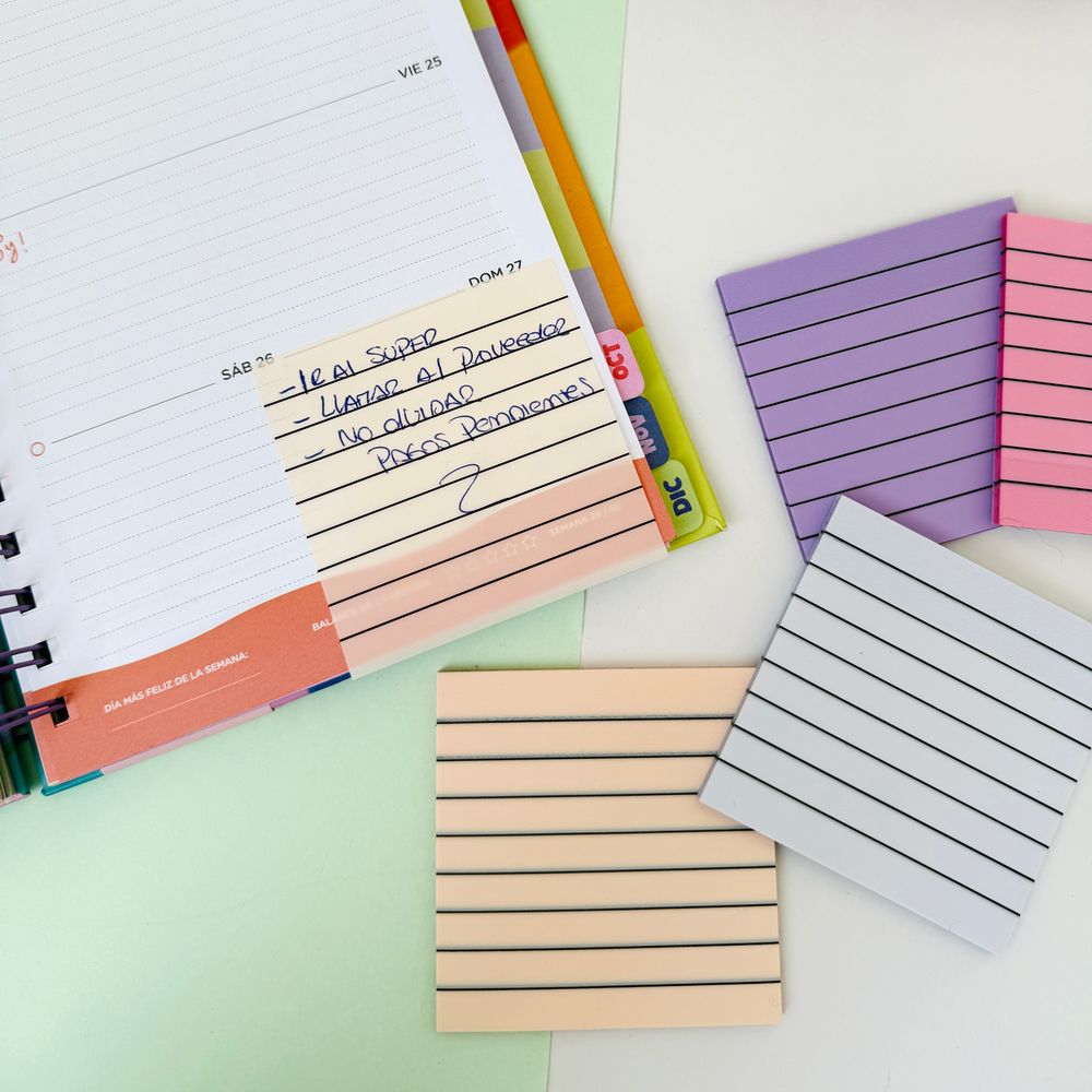 Notas adhesivas Rayas En super pack de 6 notas adhesivas de los colores mas lindos🌈 Son semi transparentes, perfecto para escribir sobre libros y documentos sin maltratar o tinturar el papel🤓 📚Perfecto para la facu, el cole, la oficina o para dejar notitas 💕✨ ✅MEDIDAS 7,5 X 7,5 cm 💧Resistente al agua