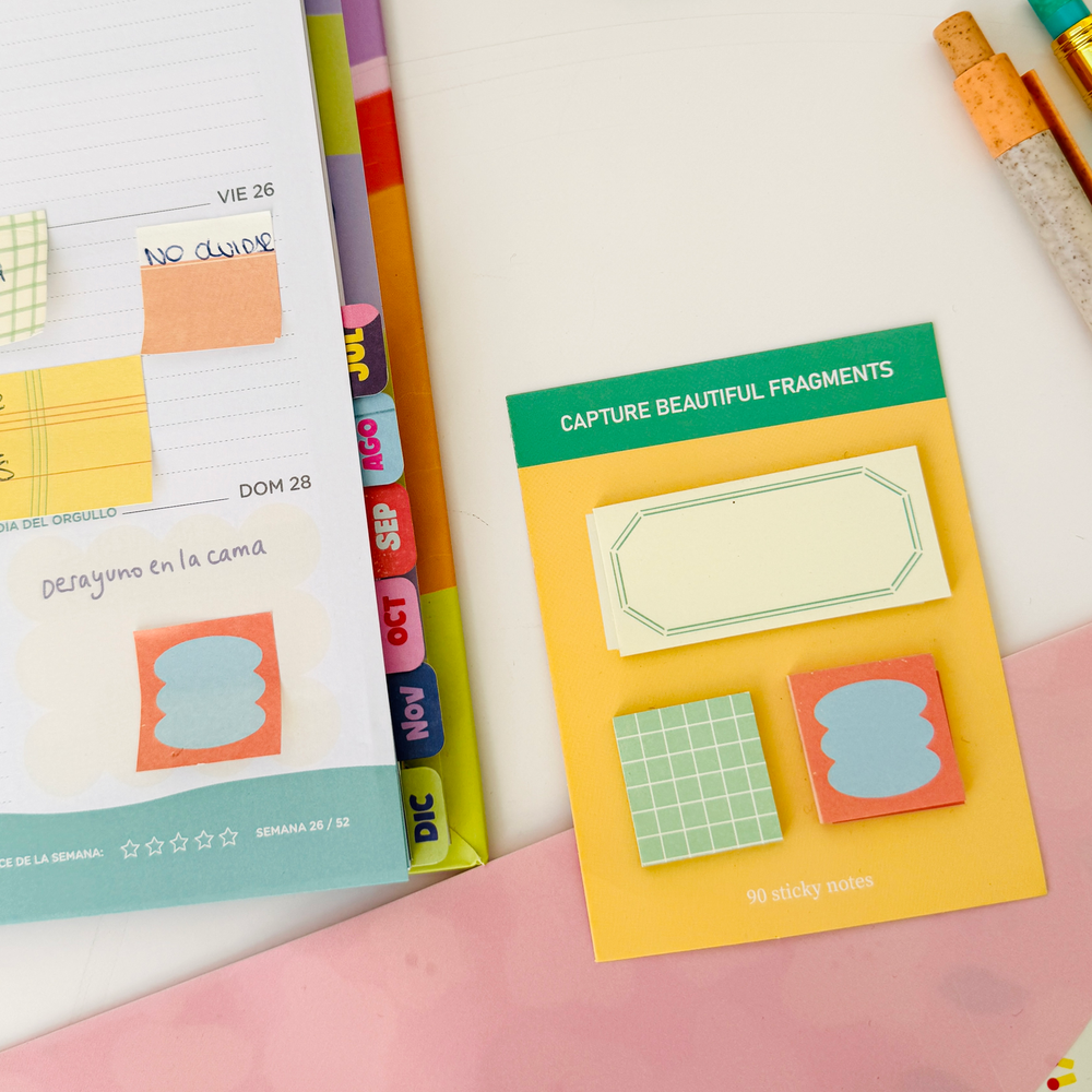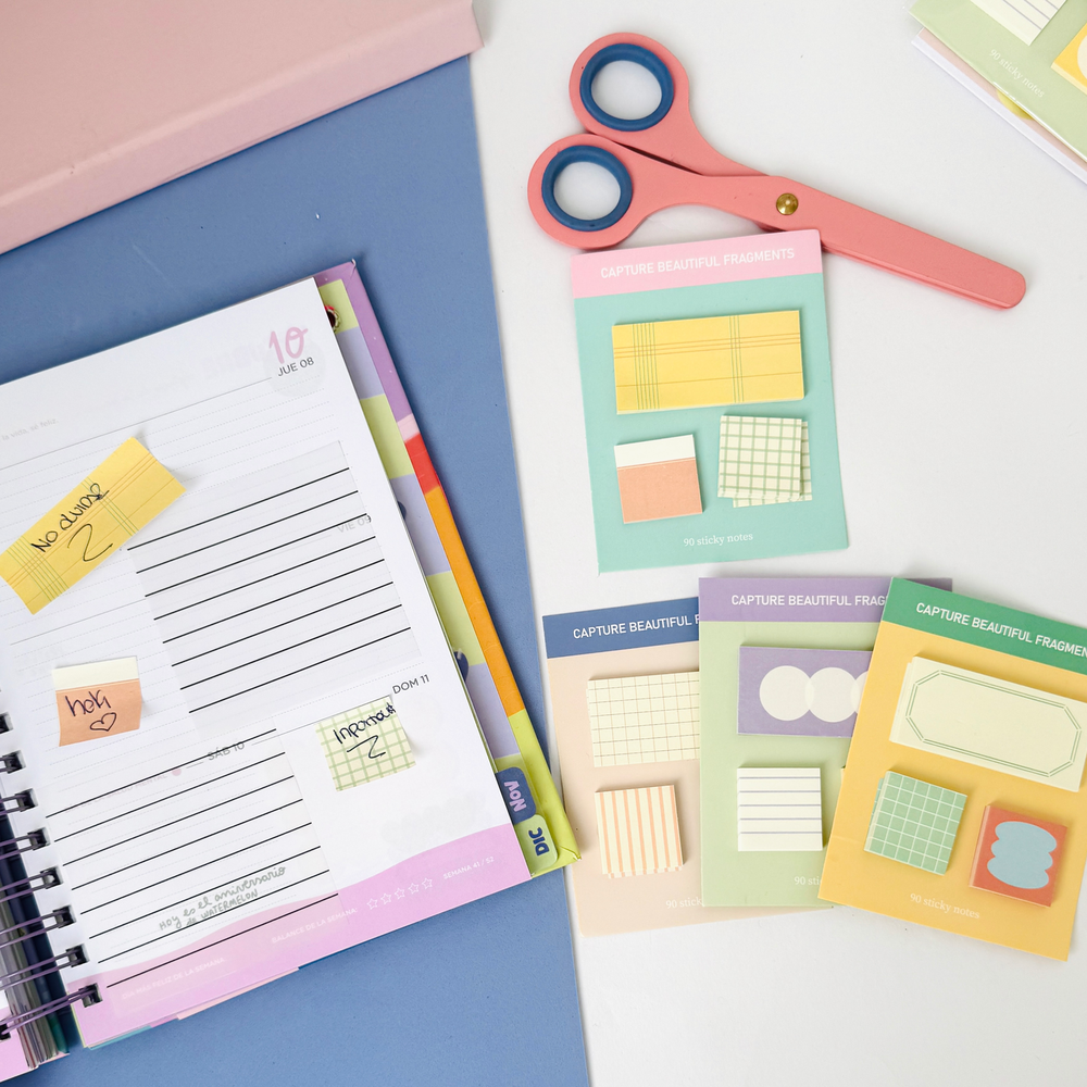 Notitas adhesivas! El pack incluye 6 cartones con 3 mini blocks de notas cada uno✨ Perfectas para colocar en tu agenda o cuaderno y notar esos pendientes extra✅ Por que no dejar alguna notita para otra persona o para vos mismo!💕 Con 2 blocks de 2,5x2,5 cm y uno mas alargado de 6x3 cm 30 hojas por block