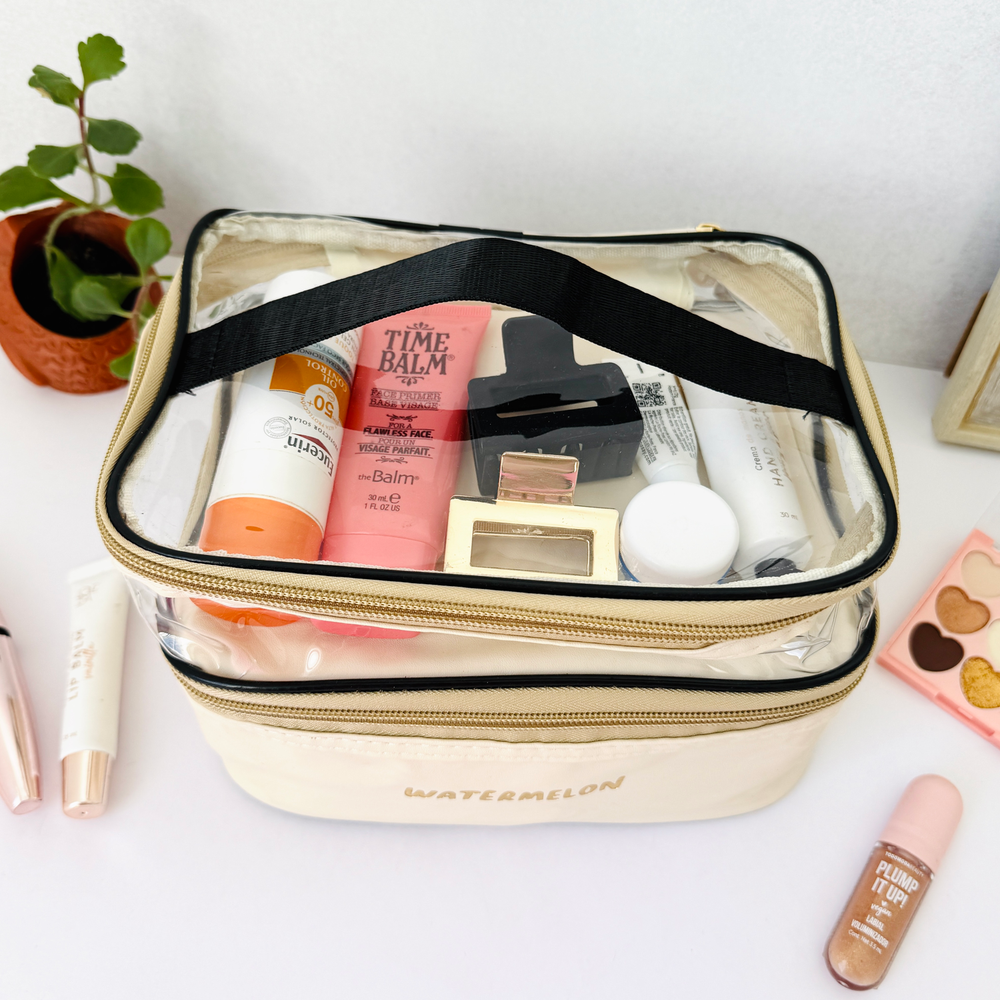 Cuenta con dos compartimentos super practicos 🌈 ☑️ Superior de PVC 6cm (perfecto para tu cuidado diario o maquillaje) ☑️Inferior 10cm (ideal para accesorios o todo lo que necesites)