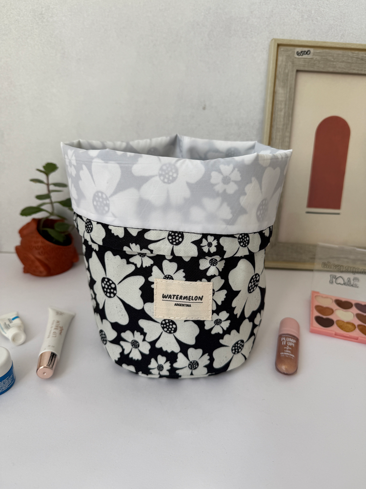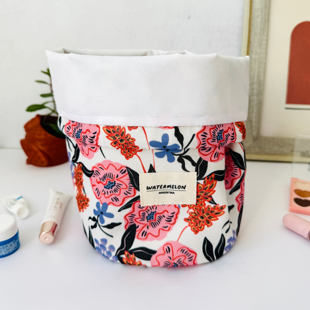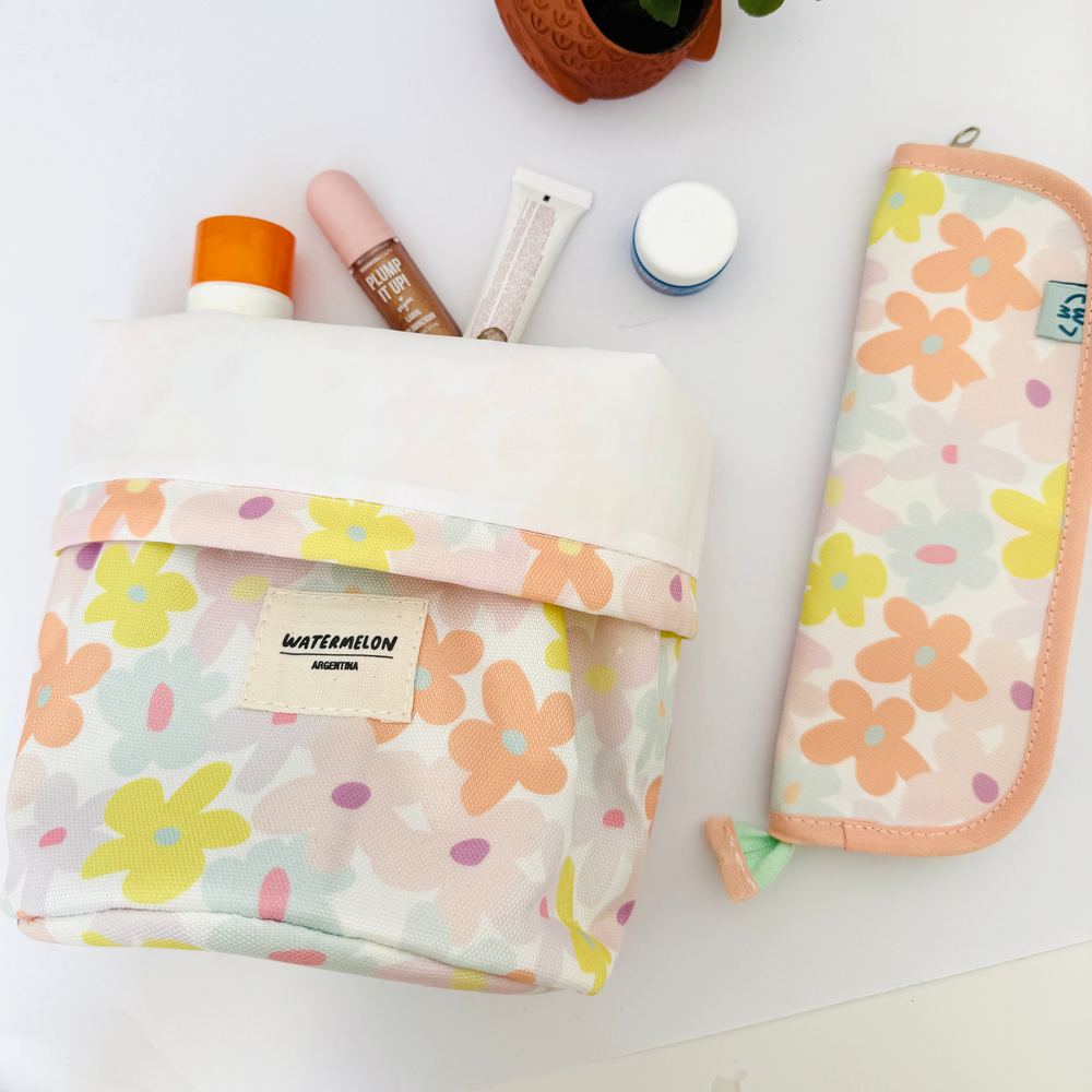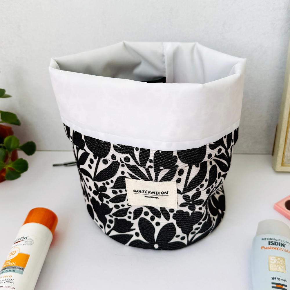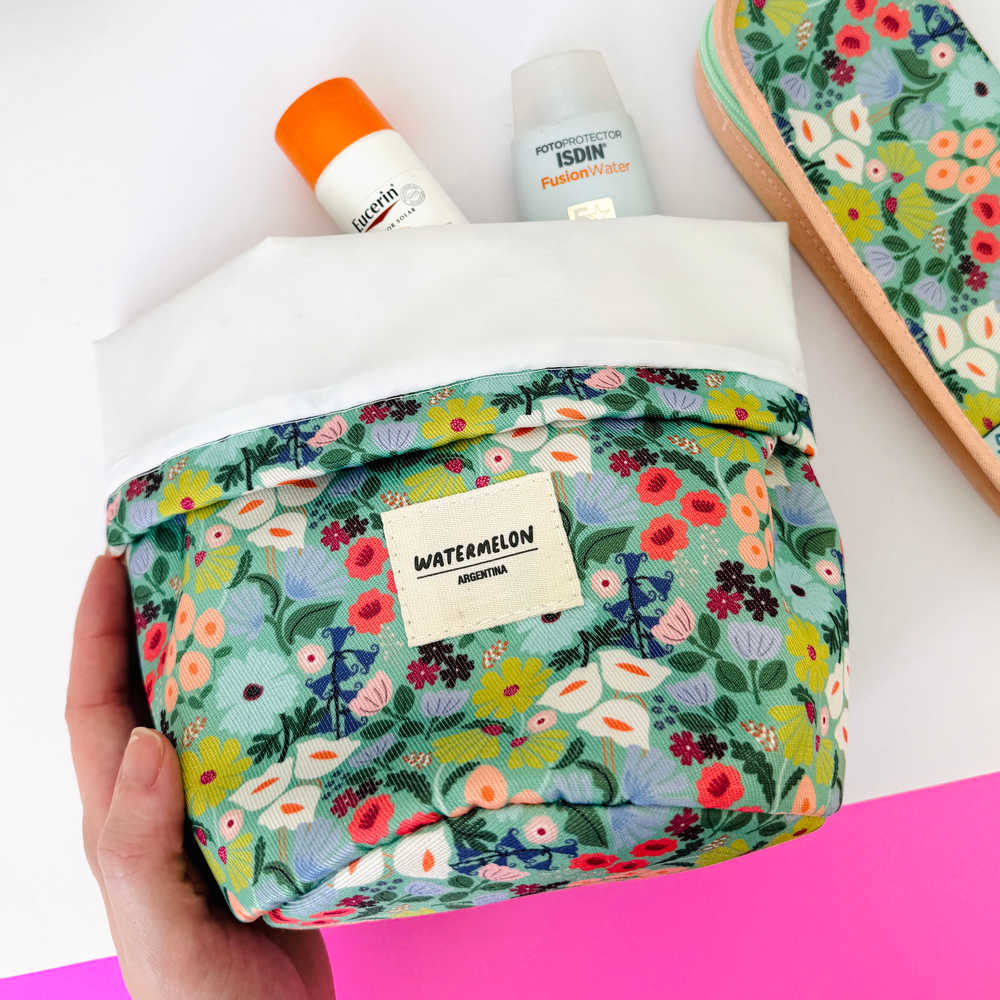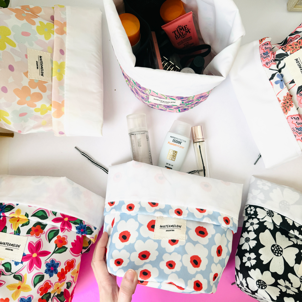 Cuenta con cordón ajustable para cerrarlo fácilmente, interior de tela impermeable con separadores organizadores y exterior de tela super resistente y liviana en todas nuestras estampas 🍉❤️