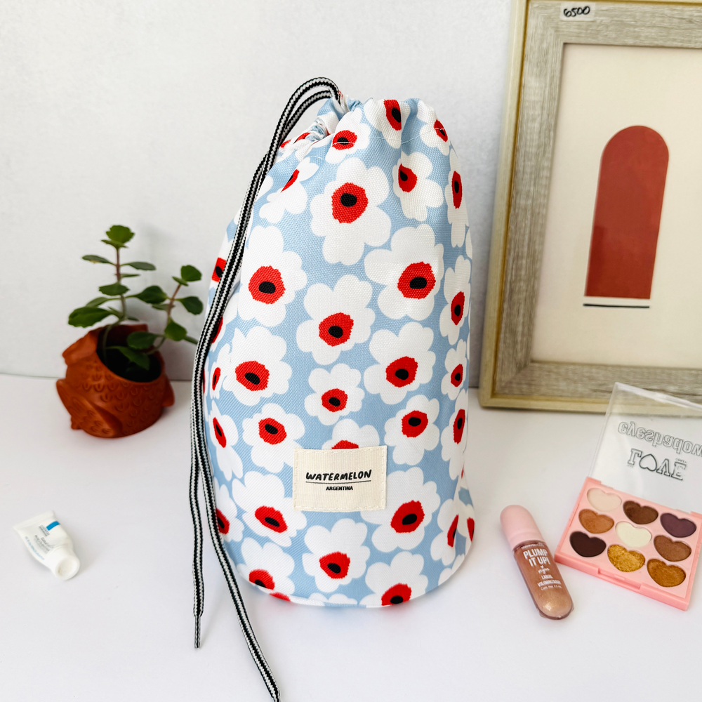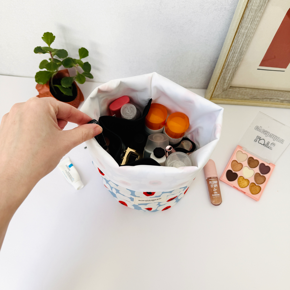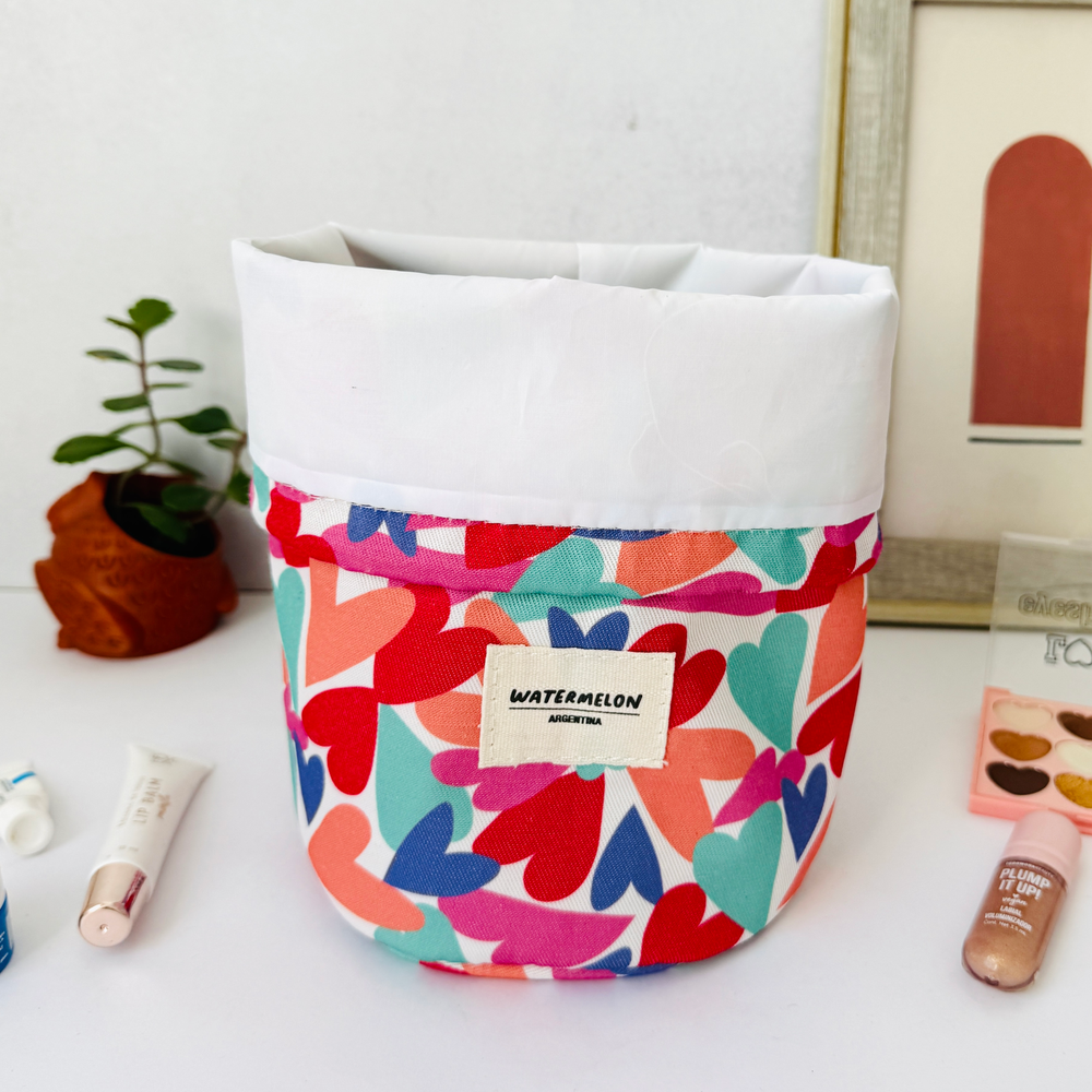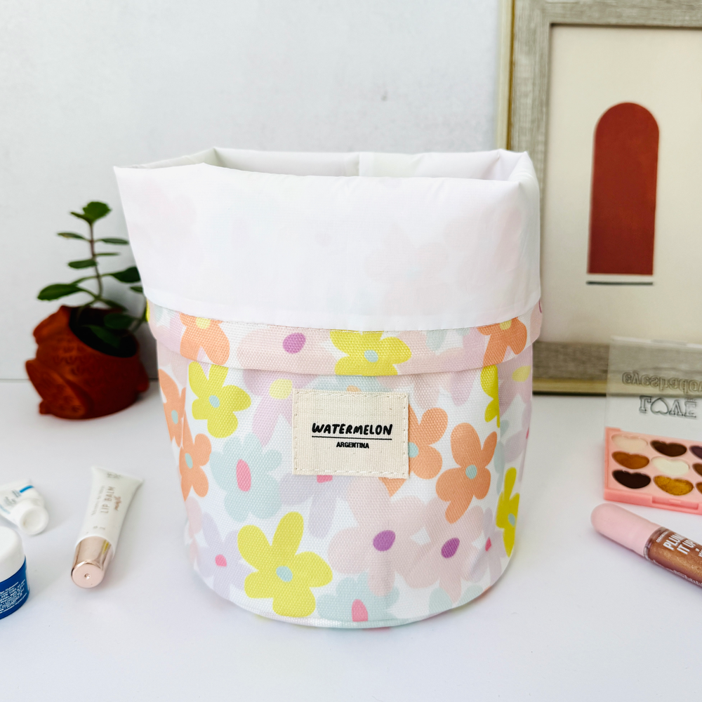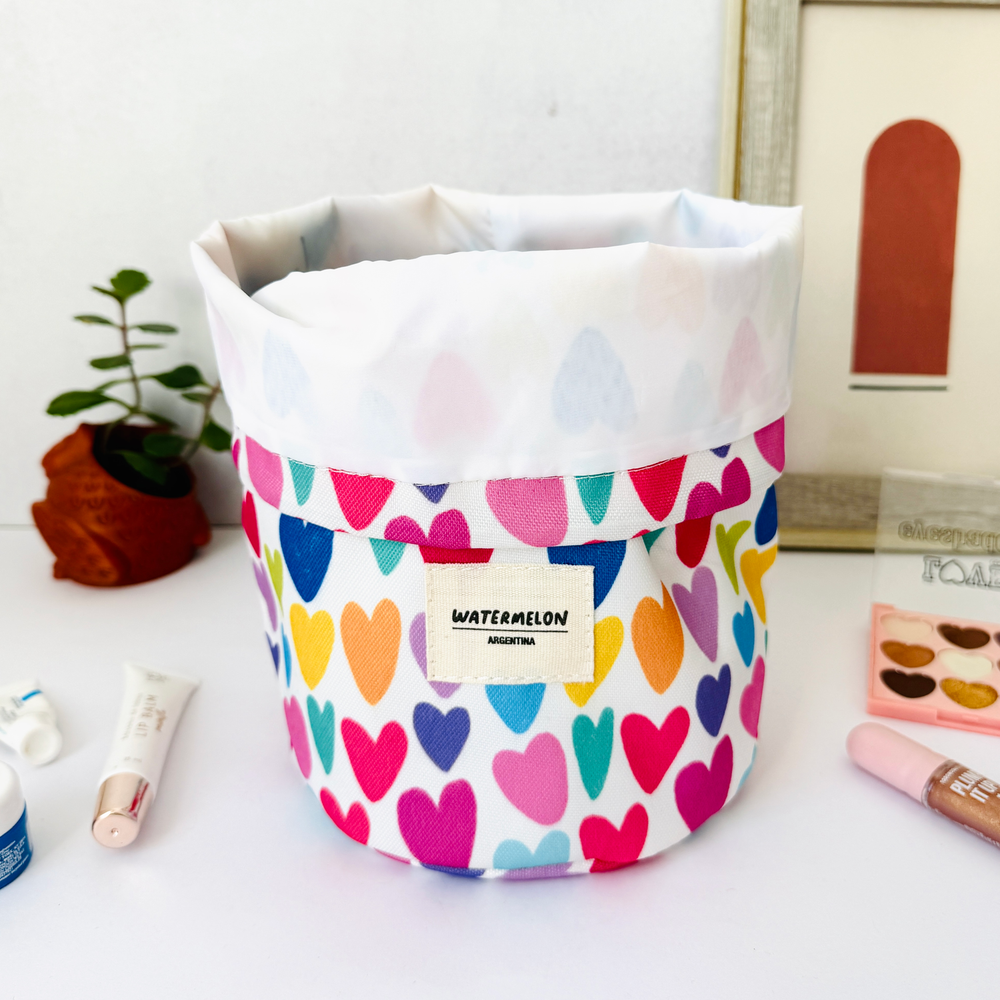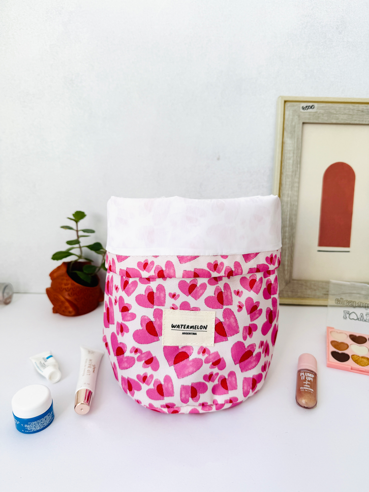 Cuenta con cordón ajustable para cerrarlo fácilmente, interior de tela impermeable con separadores organizadores y exterior de tela super resistente y liviana en todas nuestras estampas 🍉❤️