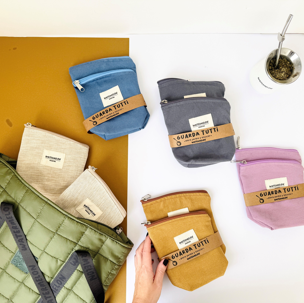 Un set súper práctico de 2 bolsitas de lona, ideal para usar como yerbero y azucarero y ahorrar espacio.