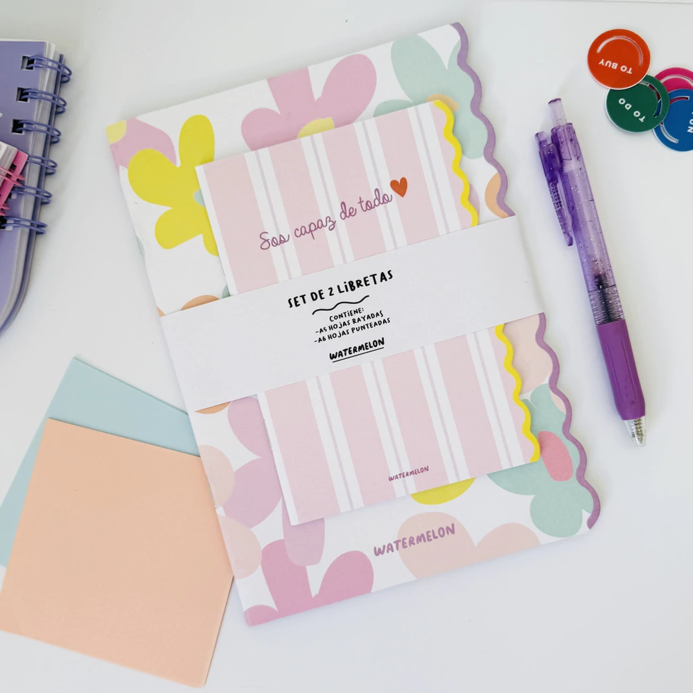 Contiene una libreta A5 de hojas rayadas y una libreta A6 de hojas punteadas