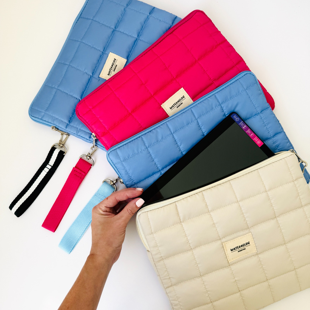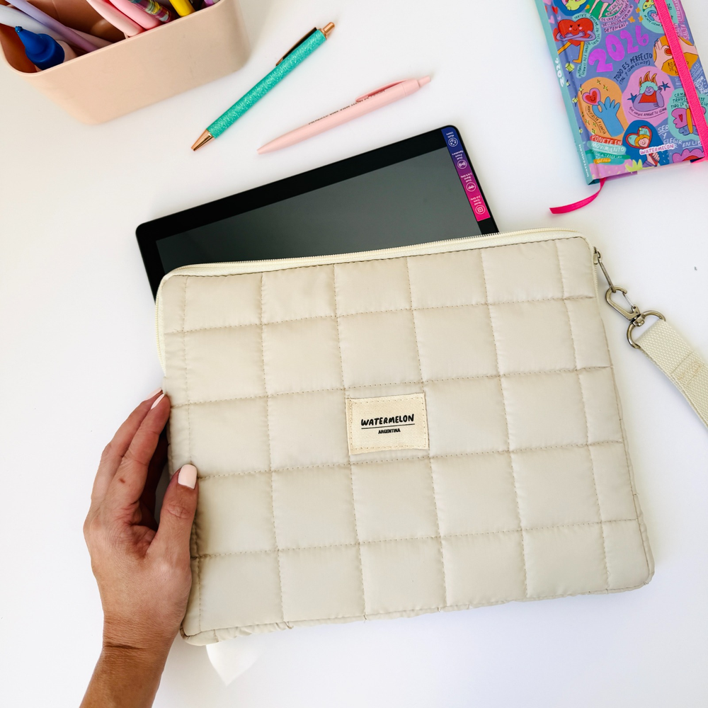 Funda para tablet de matelassé suave y acolchado, ideal para llevar la tablet protegida con mucho estilo 🤍