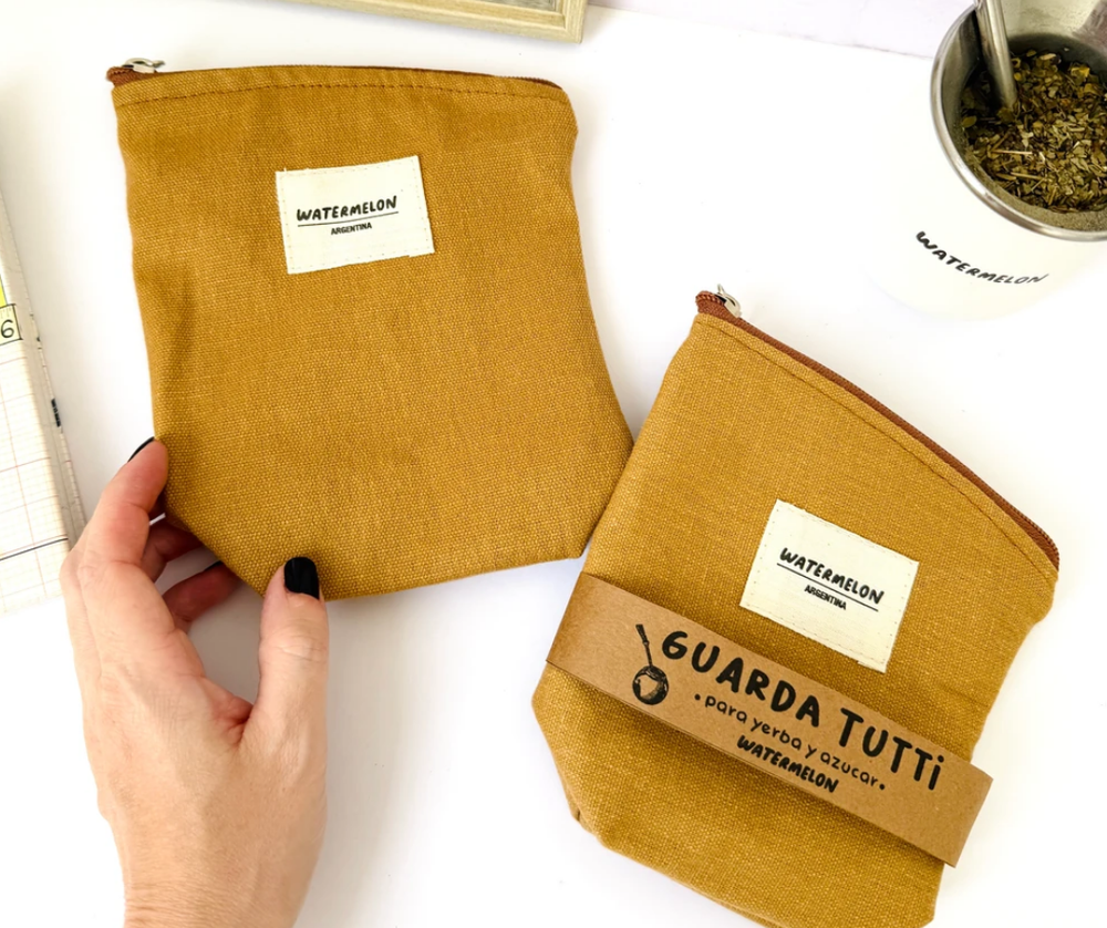 Un set súper práctico de 2 bolsitas de lona, ideal para usar como yerbero y azucarero y ahorrar espacio.