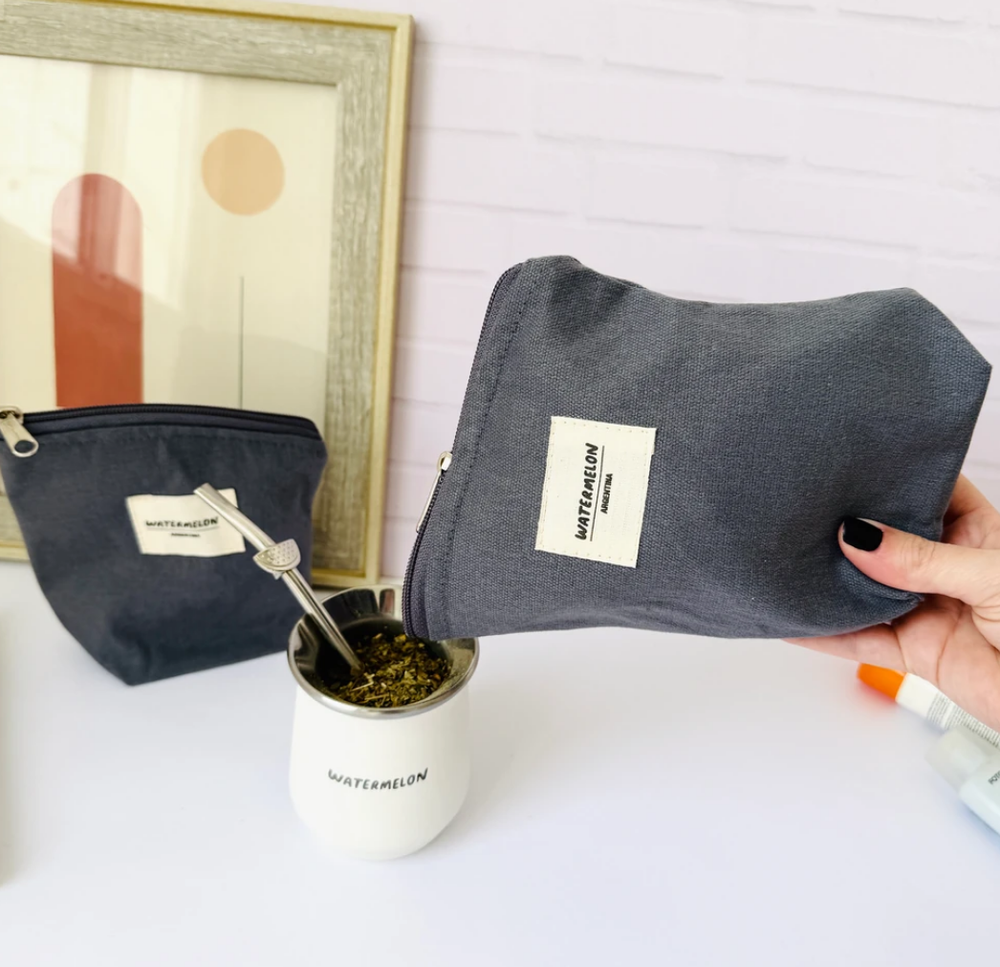 Un set súper práctico de 2 bolsitas de lona, ideal para usar como yerbero y azucarero y ahorrar espacio.