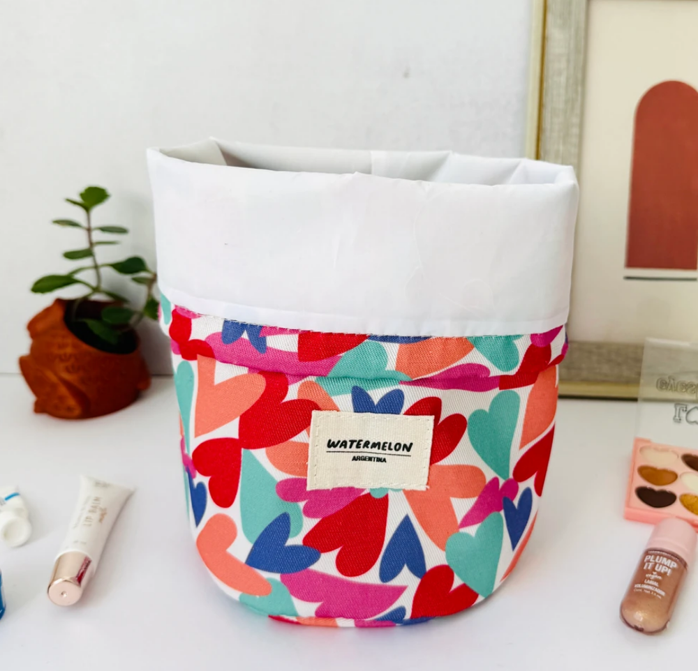 Cuenta con cordón ajustable para cerrarlo fácilmente, interior de tela impermeable con separadores organizadores y exterior de tela super resistente y liviana en todas nuestras estampas 🍉❤️